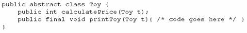 The void printToy (Toy t) method prints the details of a toy.