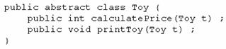 The int calculatePrice (Toy t) method calculates the price of a toy.