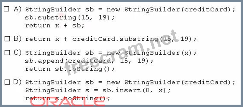 Valid 1z0-808 Dumps shared by ExamDiscuss.com for Helping Passing 1z0-808 Exam! ExamDiscuss.com now offer the newest 1z0-808 exam dumps, the ExamDiscuss.com 1z0-808 exam questions have been updated and answers have been corrected get the newest ExamDiscuss.com 1z0-808 dumps with Test Engine here: