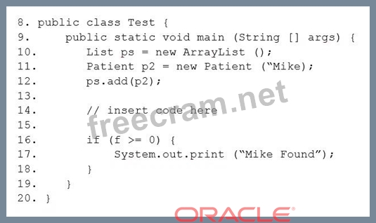 Which code fragment, when inserted at line 14, enables the code to print Mike Found?
