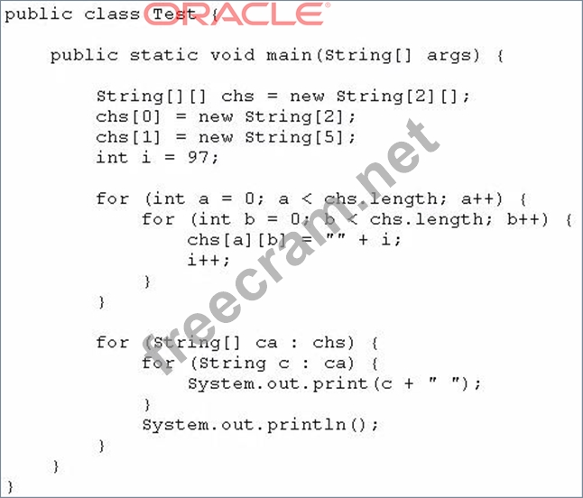Valid 1z0-808 Dumps shared by ExamDiscuss.com for Helping Passing 1z0-808 Exam! ExamDiscuss.com now offer the newest 1z0-808 exam dumps, the ExamDiscuss.com 1z0-808 exam questions have been updated and answers have been corrected get the newest ExamDiscuss.com 1z0-808 dumps with Test Engine here: