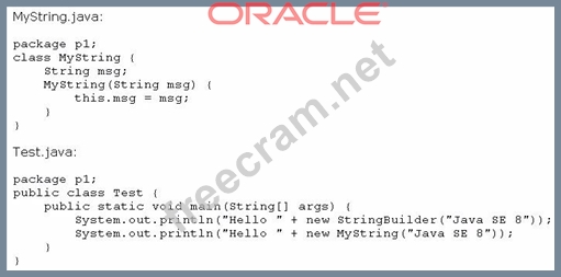 Question 82: Given: (Exhibit) What is the result? Compilation fails at li...