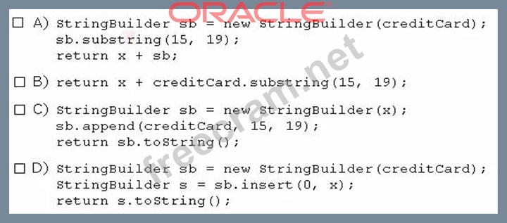Question 43: Given the code fragment: (Exhibit) Which code fragment, inse...