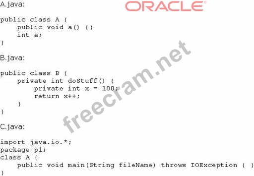 Question 58: Given the following class: (Exhibit) Which three pieces of c...