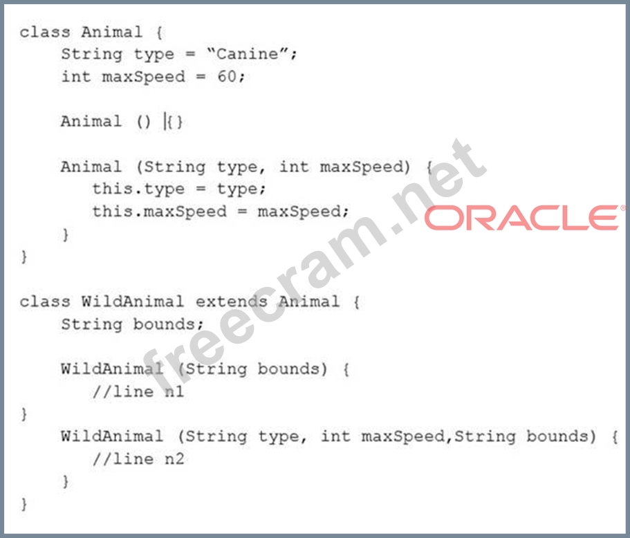 Question 67: Given the following classes: (Exhibit) Which two options fai...