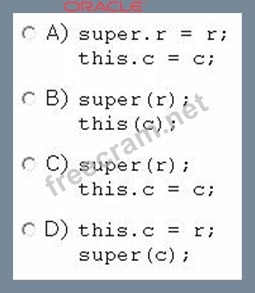 Question 67: Given the following classes: (Exhibit) Which two options fai...