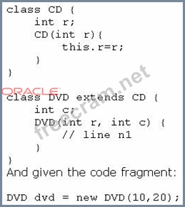 Which code fragment should you use at line n1 to instantiate the dvd object successfully?