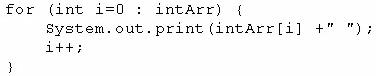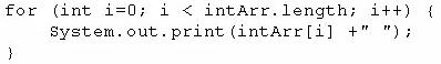 Which two code fragments, independently, print each element in this array? (Choose two.)
