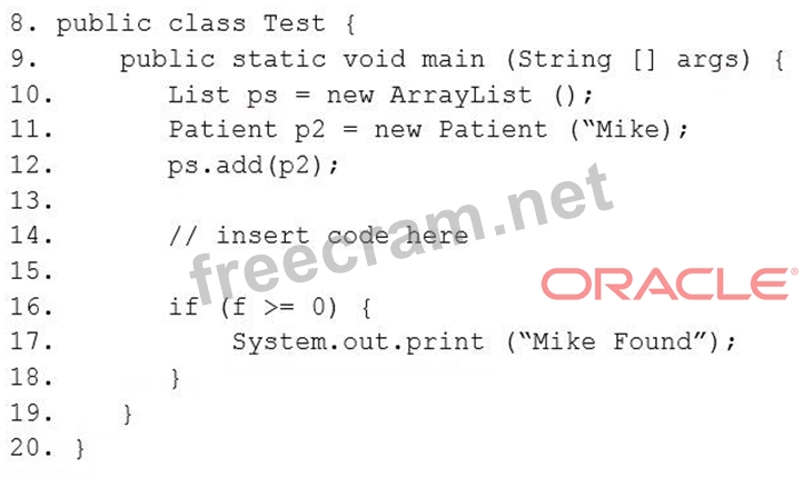 Which code fragment, when inserted at line 14, enables the code to print Mike Found?