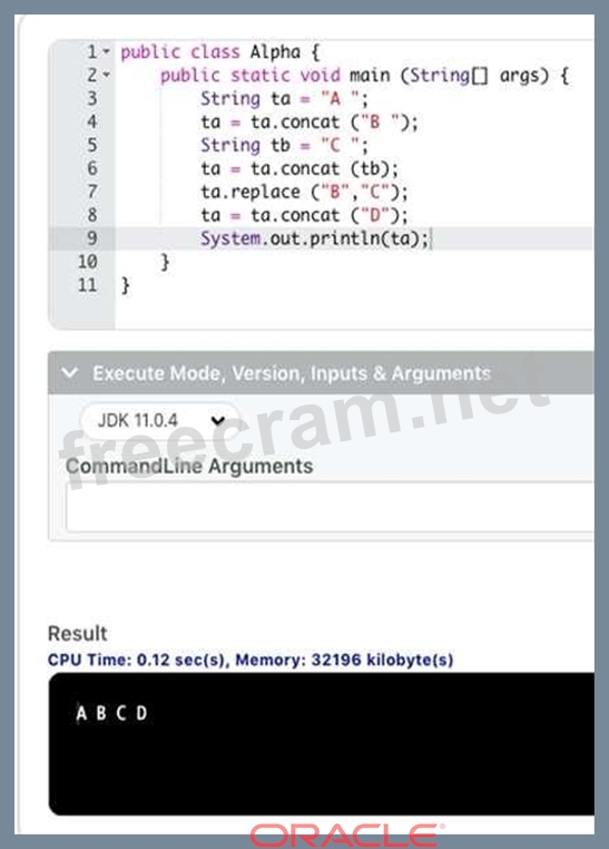 Question 173: Given the code fragment: (Exhibit) What is the result? Answe...