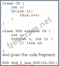 Which code fragment should you use at line n1 to instantiate the dvd object successfully?