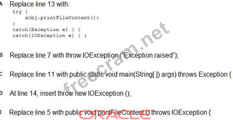 Question 92: Given the code fragment: (Exhibit) Which two modifications s...