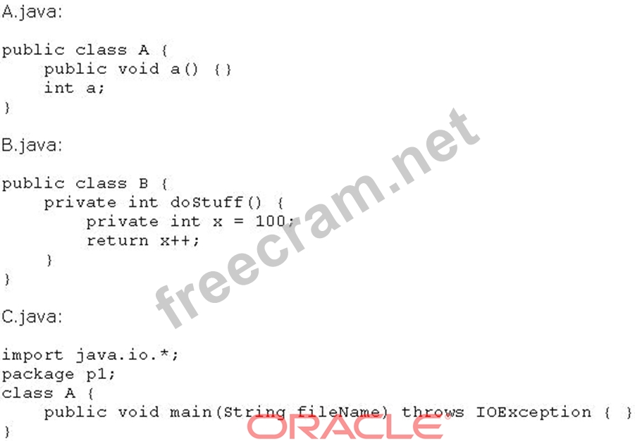 Question 76: Given the following class: (Exhibit) Which three pieces of c...