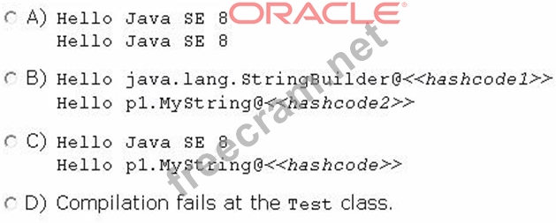 Question 160: Given: (Exhibit) What is the result? Compilation fails at li...