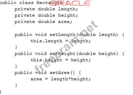 Which two changes would encapsulate this class and ensure that the area field is always equal to length * height whenever the Rectangle class is used?