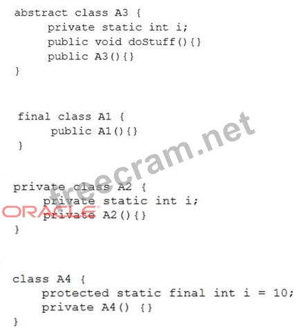 Question 76: Given the following class: (Exhibit) Which three pieces of c...