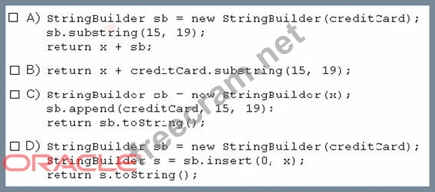 Question 145: Given the code fragment: (Exhibit) Which code fragment, inse...