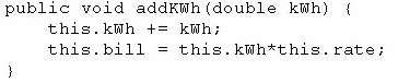 Any amount of electricity used by a customer (represented by an instance of the customer class) must contribute to the customer's bill (represented by the member variable bill) through the method use Electricity method. An instance of the customer class should never be able to tamper with or decrease the value of the member variable bill.