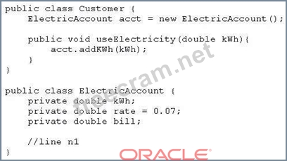 How should you write methods in the ElectricAccount class at line n1 so that the member variable bill is always equal to the value of the member variable kwh multiplied by the member variable rate?