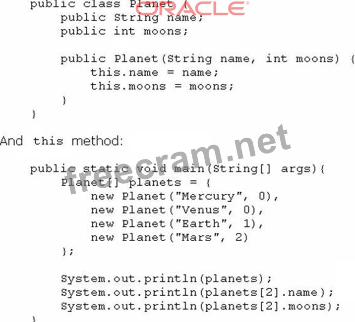Question 4: Given this code for a Planet object: (Exhibit) What is the o...