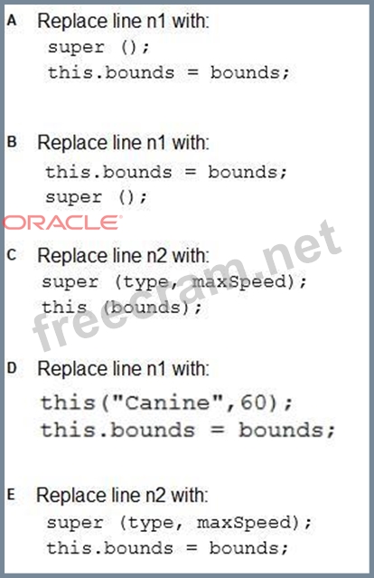 Question 90: Given the code fragment: (Exhibit) Which two modifications, ...