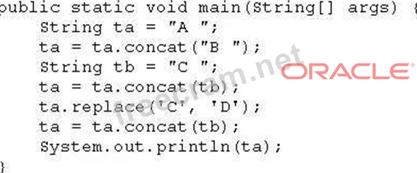 Question 47: Given the code fragment: (Exhibit) What is the result? A B C...