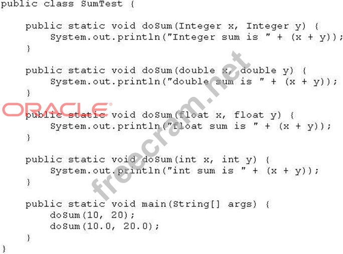 Question 177: Given: class Overloading { int x(double d) { System.out.prin...