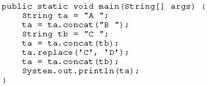 Question 47: Given the code fragment: (Exhibit) What is the result? A B C...