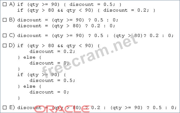 Question 175: Given the code fragment: (Exhibit) Which two code fragments ...