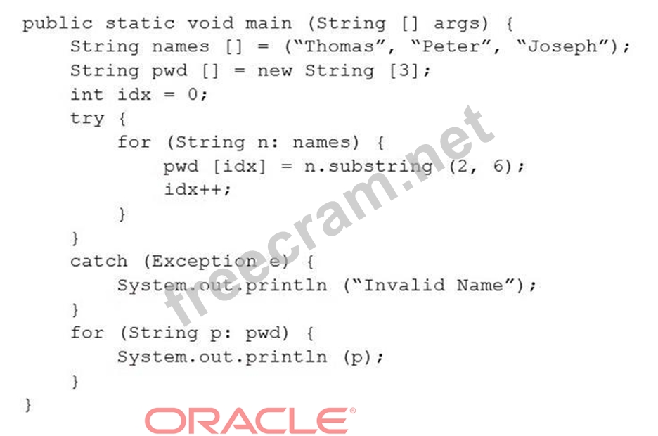 Valid 1z0-808 Dumps shared by ExamDiscuss.com for Helping Passing 1z0-808 Exam! ExamDiscuss.com now offer the newest 1z0-808 exam dumps, the ExamDiscuss.com 1z0-808 exam questions have been updated and answers have been corrected get the newest ExamDiscuss.com 1z0-808 dumps with Test Engine here: