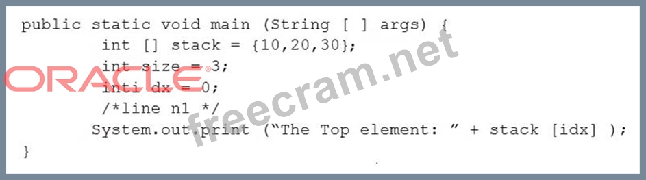 Which code fragment, inserted at line n1, pints The Top element: 30?