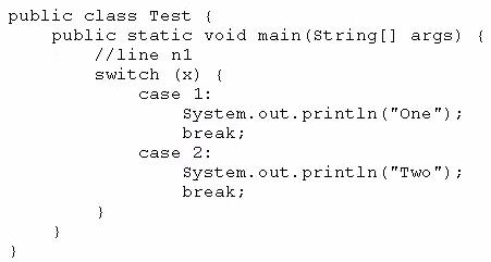 Which three code fragments can be independently inserted at line n1 to enable the code to print one? (Choose three.)
