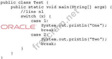 Which three code fragments can be independently inserted at line n1 to enable the code to print One? (Choose three.)