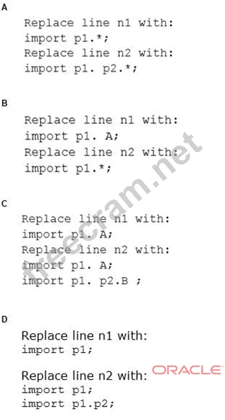 Question 85: Given the code fragment: (Exhibit) Which two modifications, ...