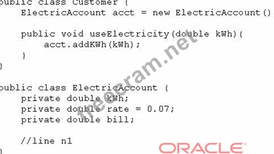 How should you write methods in the ElectricAccount class at line n1 so that the member variable bill is always equal to the value of the member variable kwh multiplied by the member variable rate? Any amount of electricity used by a customer (represented by an instance of the customer class) must contribute to the customer's bill (represented by the member variable bill) through the method use Electricity method. An instance of the customer class should never be able to tamper with or decrease the value of the member variable bill.