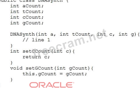 Question 46: Given: (Exhibit) Which statement on line 1 enables this code...