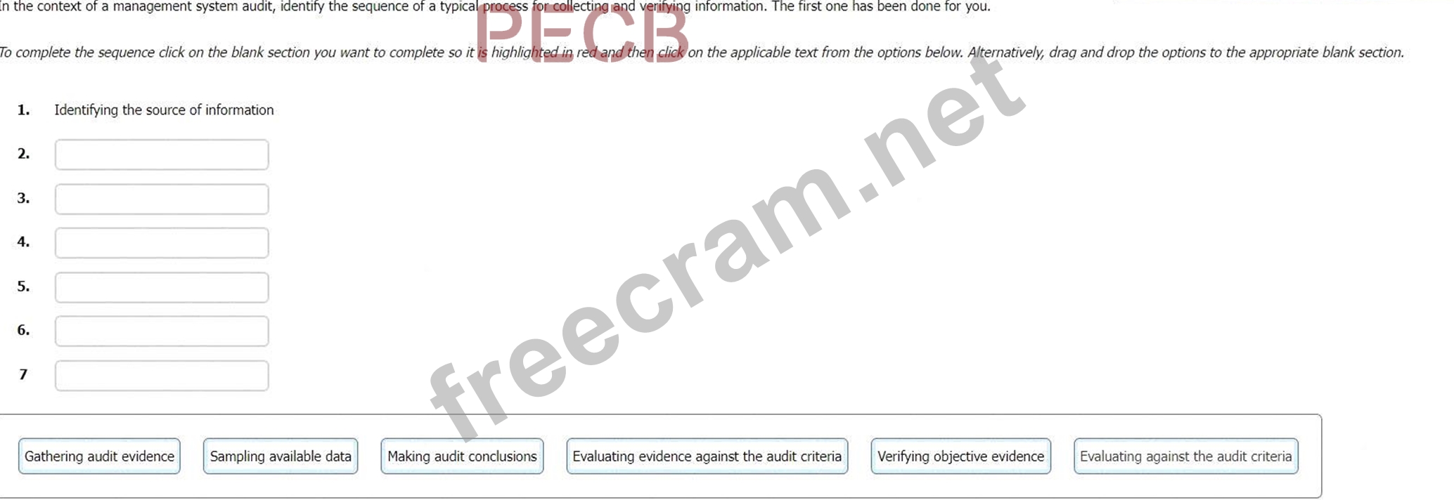 Identifying the source of information: The audit team should identify the sources of information that are relevant to the audit objectives, scope and criteria. These sources may include documents, records, personnel, processes, activities, facilities, equipment, etc. The audit team should also determine the methods and tools for accessing and collecting the information, such as interviews, observations, document review, sampling, etc.