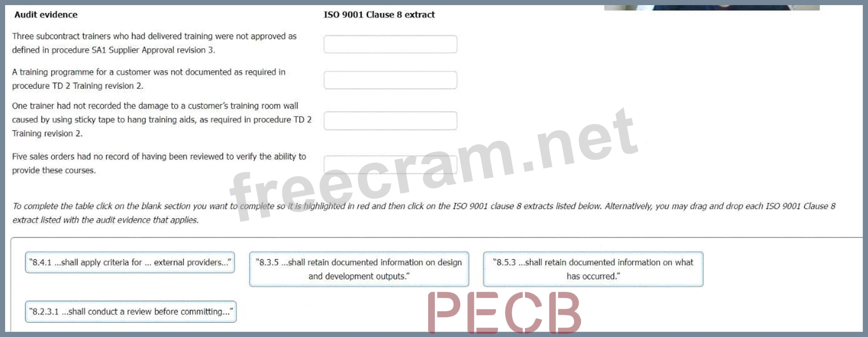 Here is the correct matching of the ISO 9001 Clause 8 extracts to the audit evidence: