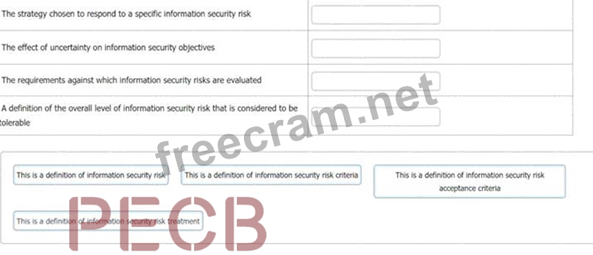 The correct answers for matching each of the descriptions with the appropriate risk term are: