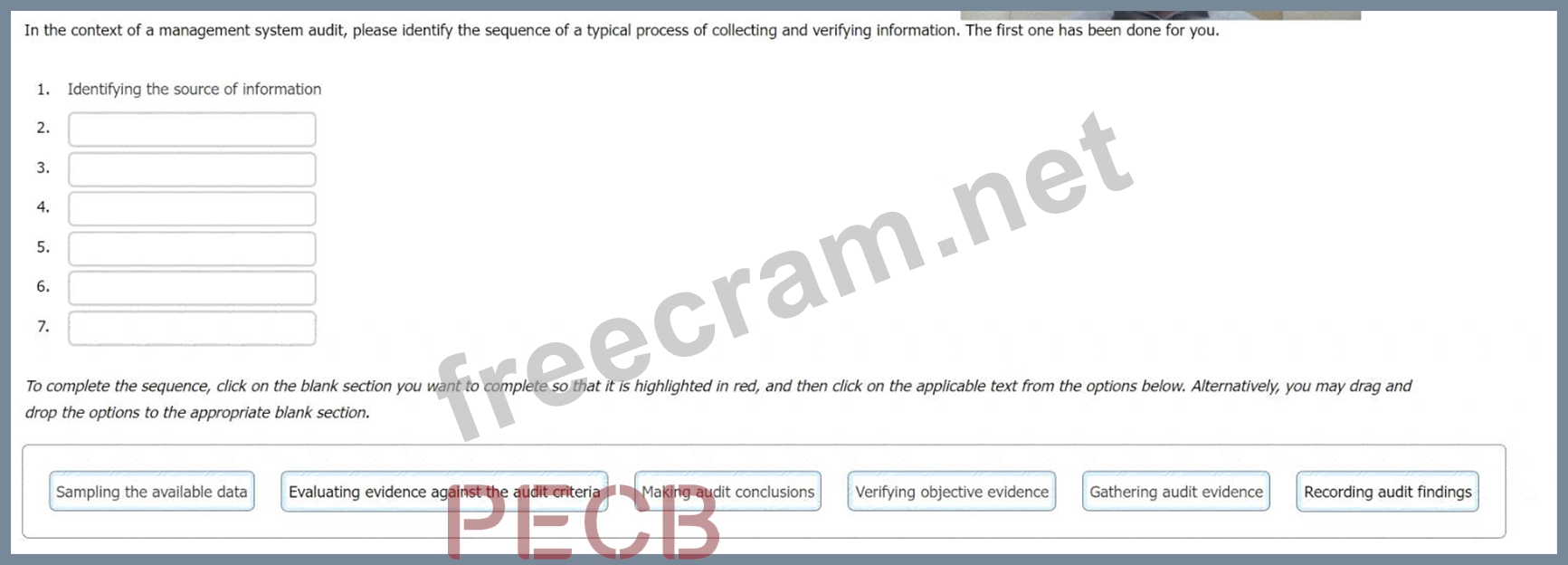Verifying objective evidence 5. Evaluating evidence against the audit criteria 6. Recording audit findings 7.
