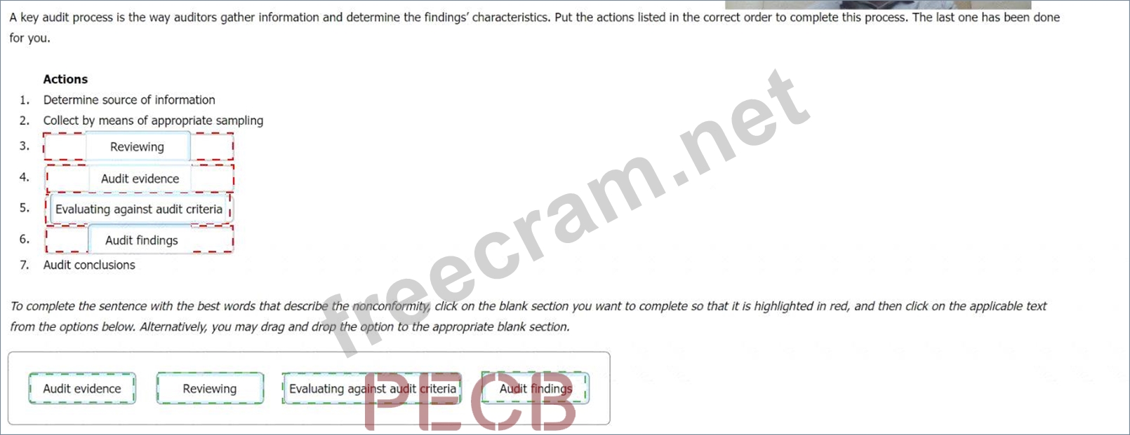 Question 19: In regard to generating an audit finding, select the words t...