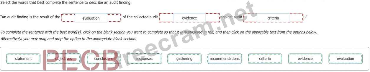 Question 84: An audit finding is the result of the evaluation of the coll...