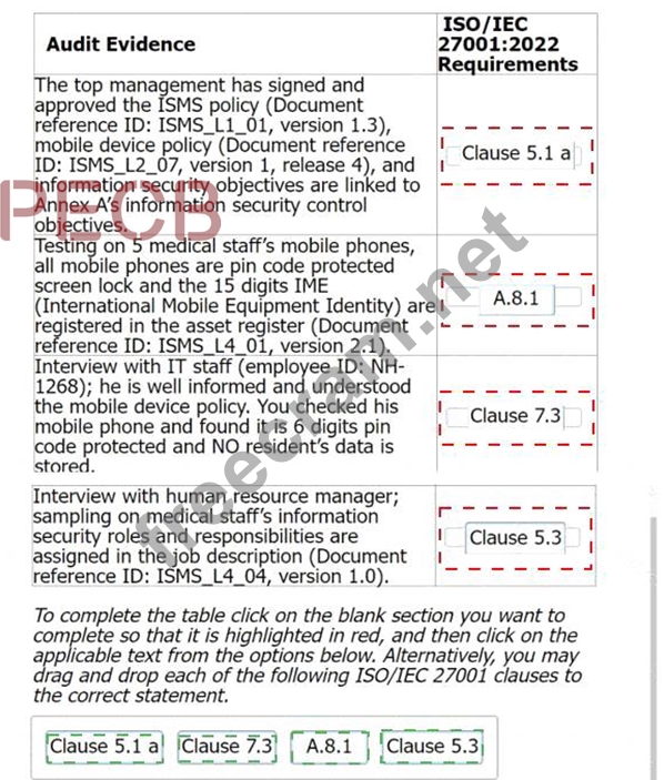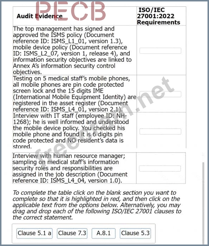 Match the audit evidence to the corresponding requirement in ISO/IEC 27001:2022.