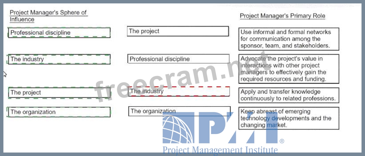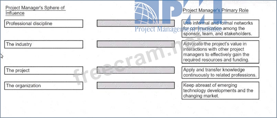 Match the project manager's sphere of influence with the associated primary role.