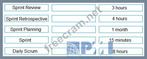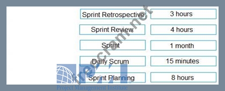 Match each of the following items with its associated time-boxed duration for a one-month Sprint.