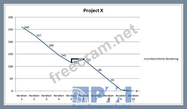 Question 140: At the retrospective, the burndown chart shows that the proj...