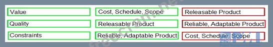 Question 76: Match each component of the Agile Triangle (on the left) to ...