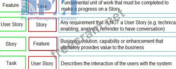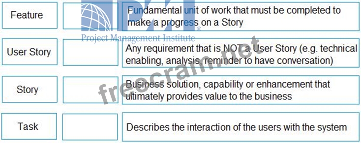 Question 67: Match each Agile requirement type (on the left) to its defin...