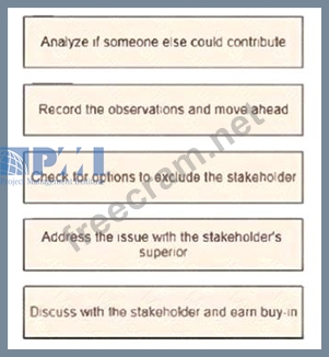 Question 726: A key stakeholder is refusing to participate in a crucial pr...