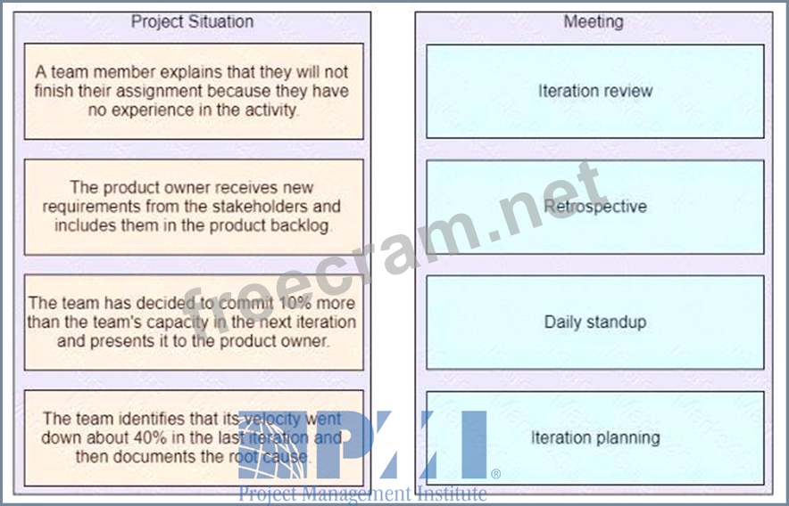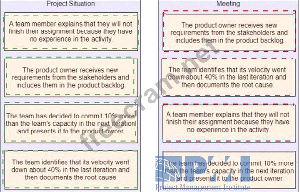 Match the project situation on the left to the meeting on the right where the situation could occur.